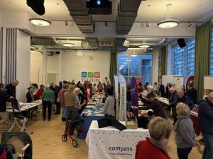 Schon vor dem offiziellen Beginn füllte sich der Saal mit rund 150 interessierten Besucherinnen und Besuchern. Die zugewandte Begrüßung durch den Vorstand der TWG eG gemeinsam mit Frau Giessner (Pflege vor Ort) und Frau Semmler-Koch (Landkreis Potsdam-Mittelmark) sowie die liebevoll gestalteten Stände der Akteure schufen eine offene und angenehme Atmosphäre – geprägt von Begegnungen und lebendigem Austausch. Viele Gäste nutzten die Gelegenheit, persönliche Fragen zu stellen, Erfahrungen zu teilen und sich umfassend zu informieren.